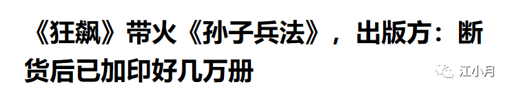 电视剧火了,演员火了,就连《孙子兵法》这本书都火了,很多地方根本就买不到,出版方无奈,只好临时加印了几万册应急。