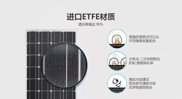 目前市面上采用ETFE材质封装材料的轻量型太阳能电池板,重量仅为普通玻璃电池板重量的30%。重量减轻的同时,移动户外场景下的耐用抗冲击性依然保持稳定,且不会出现玻璃组件的破碎情况~