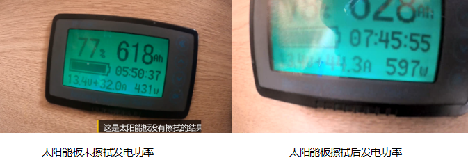 在太阳能板没有擦拭的情况下,发电功率维持在440W左右。擦拭完太阳能板后,一路飙升,最高纪录达到596W,配备的40AMPPT控制器都过流保护了,没想到太阳能板发电效果如此之好!小提示:600W太阳能板最好应配备60A的MPPT控制器哦,博主已经更换成我们60A的控制器啦~