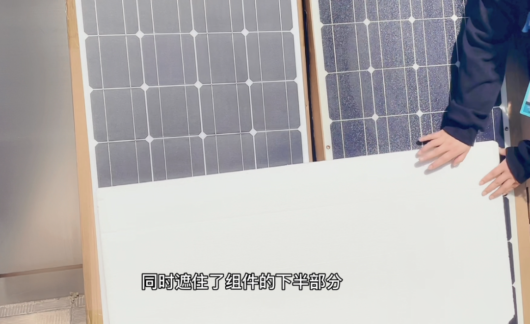 然后使用一大块泡沫板同时遮住太阳能板的下半部分,此时两块太阳能板的充电电流都变成了0安。也就是说,在这样的遮挡下,太阳能板已经无法给电池充电了。所以我们在日常的行车、驻车过程中,一定要避免树荫、杂物等对太阳能板的遮挡,定期清洁才能保证发电效率。