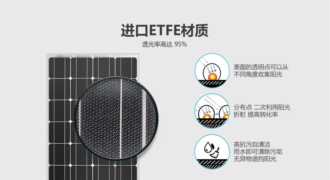 房车太阳能板,除了单晶和多晶的区分,太阳能板表面的封装材质不同也有很多说法,其中ETFE材质一直为人们津津乐道,它到底有什么不同之处呢?