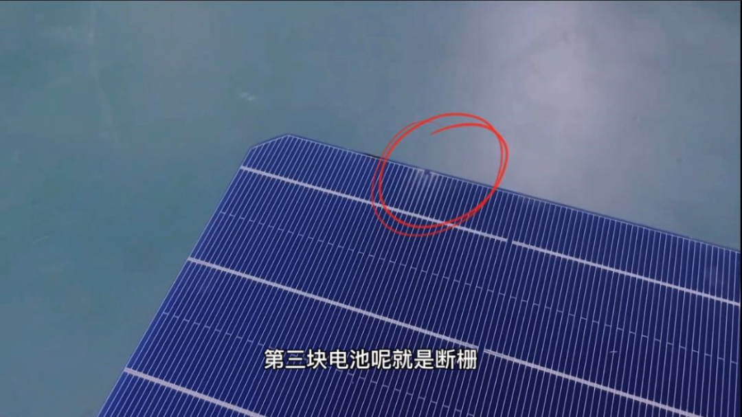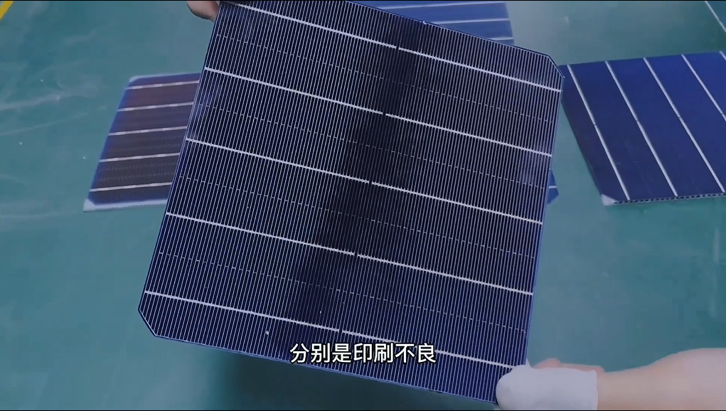 B级电池片有存在漏浆、虚印、断栅等缺陷的可能,比如下图中的这三块电池,分别存在的问题是印刷不良、阴阳片和断栅;