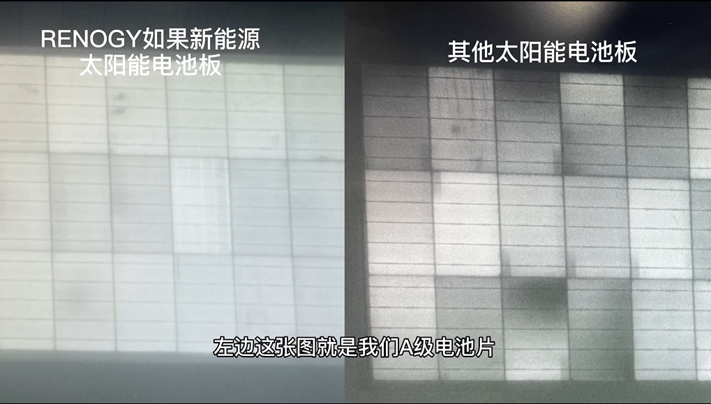 EL测试是可以判断太阳能板质量的,EL测试就像是给每一个太阳能板拍X光,有什么问题全都会被显示出来,左边这张图就是我们A级电池片经过EL测试后的样子,而右边这张图可以明显看到电池片的污染、混档,这样的电池片组合在一起,如果标称是100W的功率,实际发电功率肯定是达不到100W的。所以在选购时一定要问厂家太阳能板有没有经过专业的EL测试。
