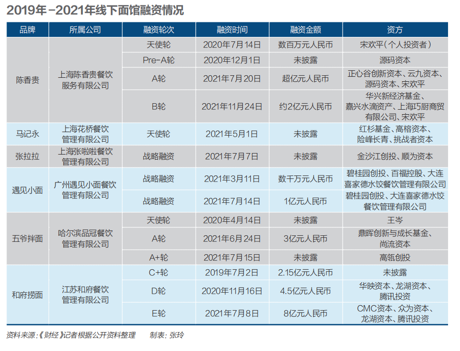 2021年,以面馆为代表的中式快餐赛道成为资本的新宠儿,马记永、张拉拉、陈香贵是其中最响的三个名字。它们都注册在上海,都走精品路线,一碗兰州牛肉面都卖27元左右,也都获得了资本的热捧——它们的背后是红杉、高榕、金沙江等明星机构。据不完全统计,在上海市场,陈香贵有98家店,马记永76家,张拉拉51家,全都是直营店;同时,它们也已经扩张到全国多个城市。