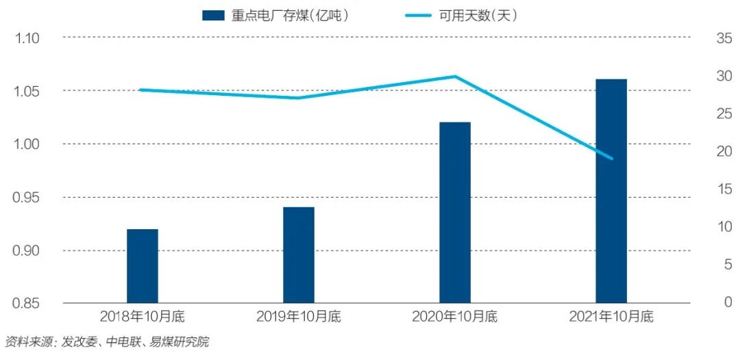 图2:近年10月底煤炭库存、电厂存煤可用天数对比
