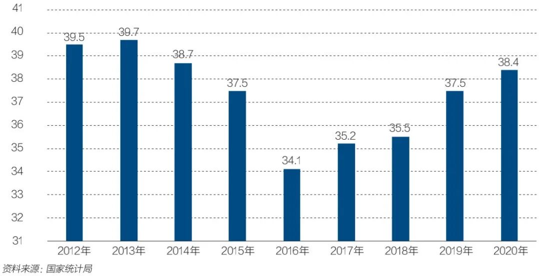 图7:2013年-2020年原煤产量(单位:亿吨)