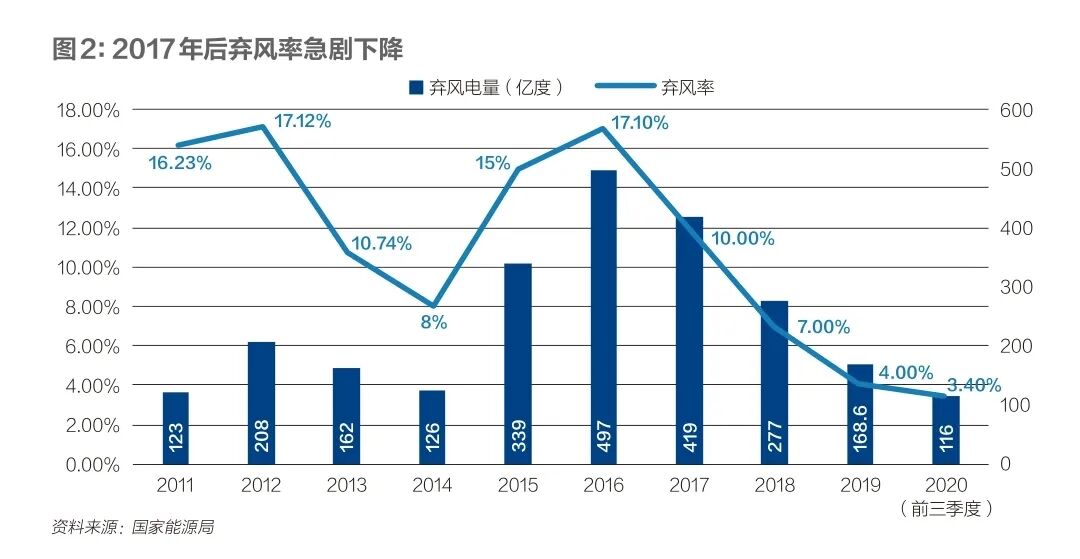 弃风弃光一度是困扰中国新能源发展的关键问题,2016年前后,部分省份弃风率一度超过30%,2017年之后虽然迅速缓解,但在未来更高比例的新能源装机下,消纳隐忧依然挥之不去。