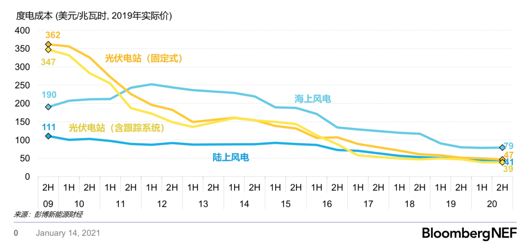 全球风电、光伏基准度电成本