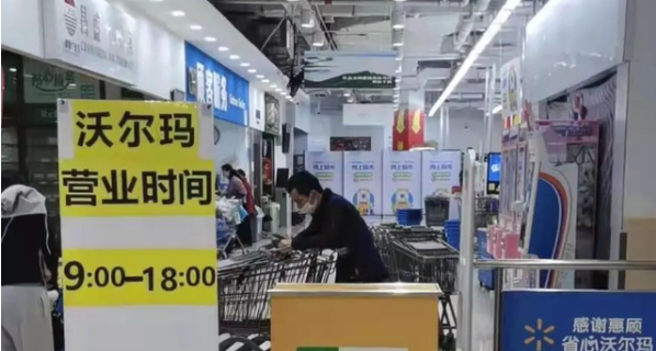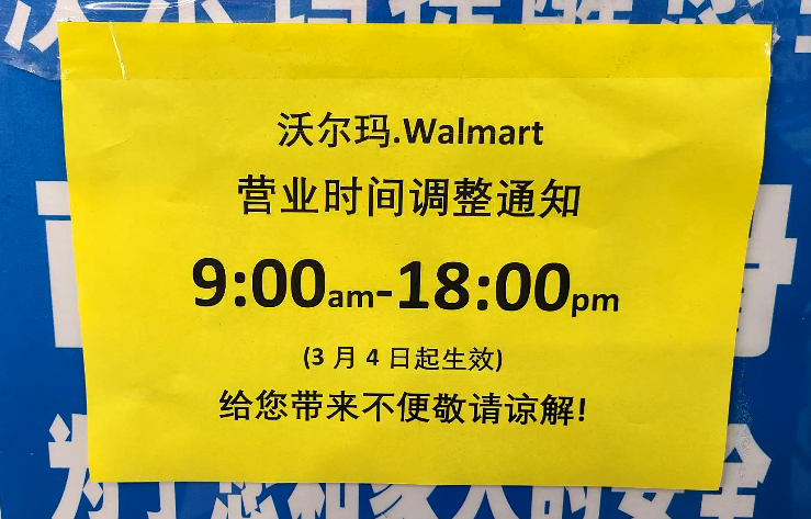 看到摆放着关于沃尔玛营业时间调整的通知,