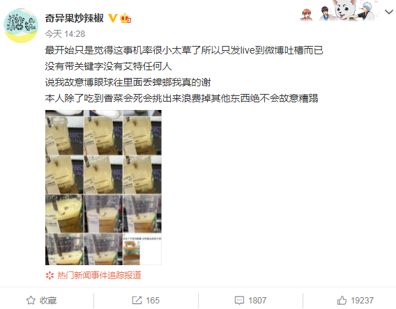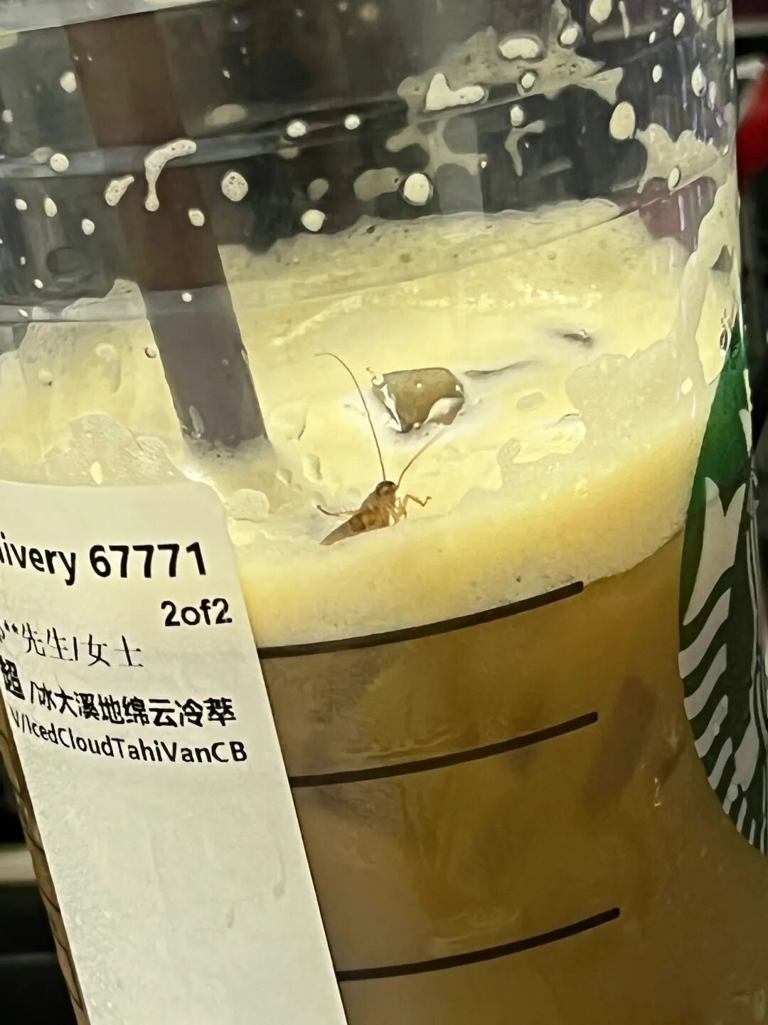 导读:星巴克外卖中喝出活蟑螂?门店回应了