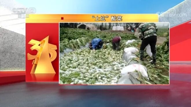 酸菜腌制过程:芥菜收割后并不清洗,有些甚至带着枯萎发黄的叶子,盖上土薄膜在地头的土坑内直接腌制,工人或穿着拖鞋或光着脚在酸菜上踩来踩去,有的甚至一边抽烟一边干活,抽完的烟头直接扔到酸菜上。