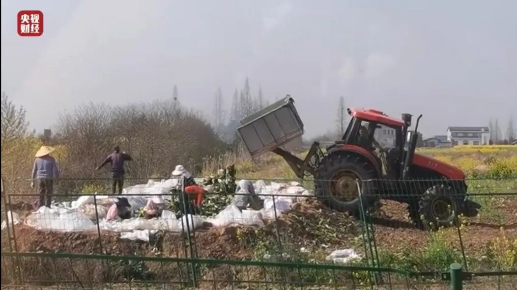 然而记者实地探访得知,该企业标准化腌制池腌出来的酸菜是用来加工出口产品的,老坛酸菜包里的酸菜则是从外面收购来的“土坑酸菜”。记者跟随公司的货车,在附近一片农田里,找到了腌制酸菜的土坑。