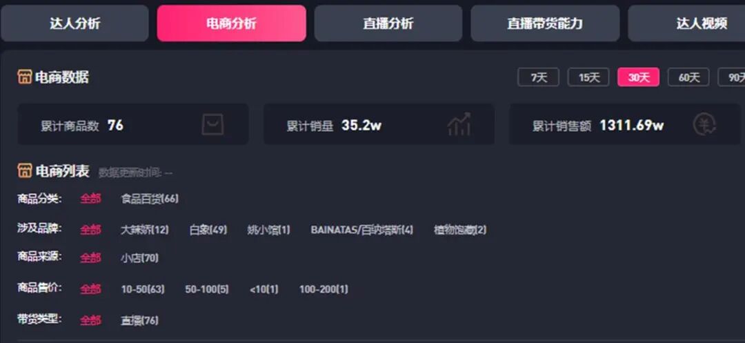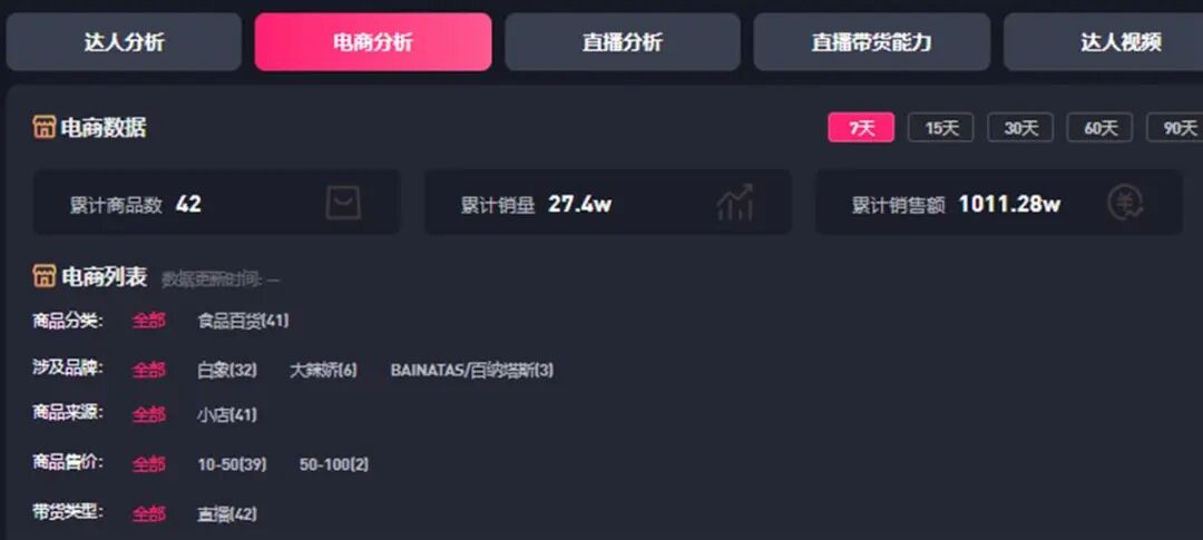 在直播观看人数激增的同时,白象抖音平台产品销量也迎来激增。抖查查数据显示,近七日,白象累计销量为27.4万件,累计销售额为1011.28万元,占近一个月销售额的77%。