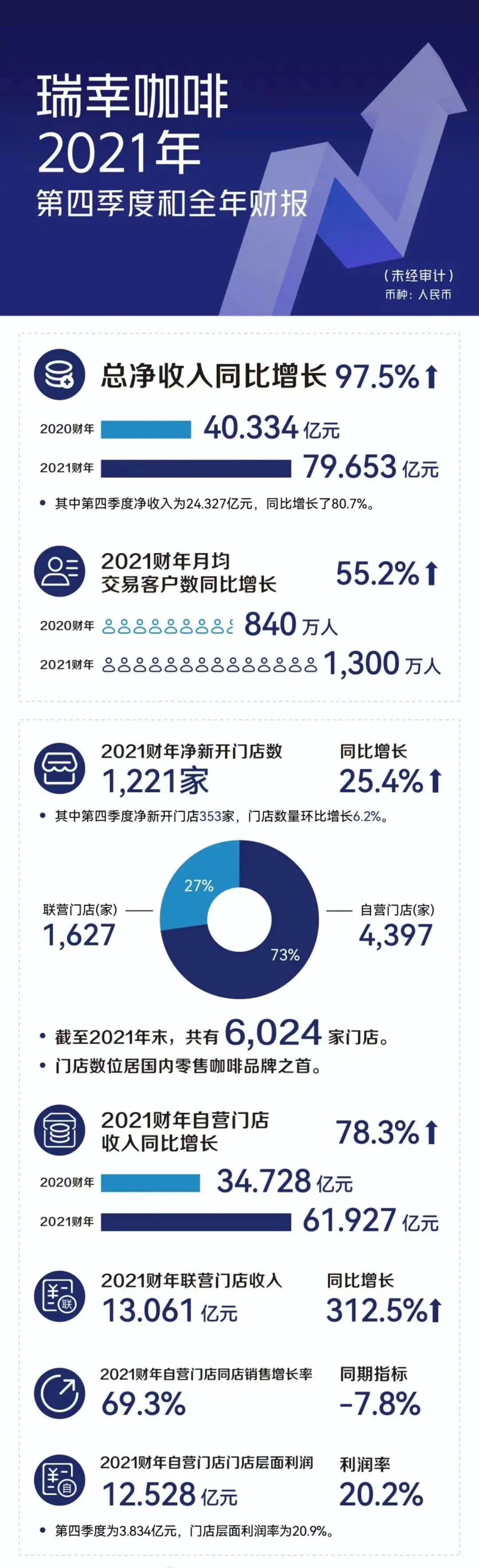 导读:瑞幸2021年净收入79亿,门店数超越星巴克