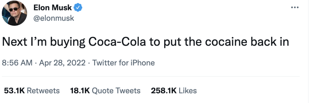 导读:马斯克:接下来我要收购可口可乐公司,重新加入可卡因
