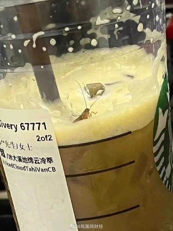 3月,有网友在微博发布图文称在星巴克咖啡中喝出活蟑螂,该条评论下,博主进一步解释称“这已经不是第一次了”“刚开始以为它是死的,拍照给客服后发现他还活着”。