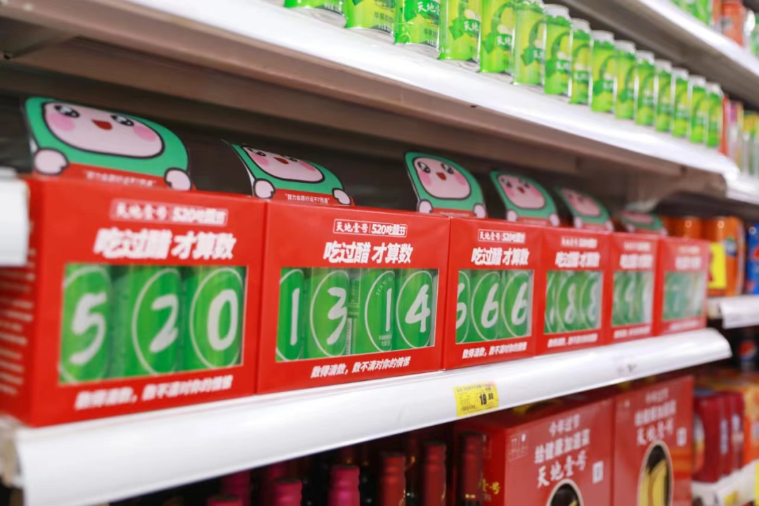 或许是尝到了“吃醋”的甜头,2021年,天地壹号再次持续借势,线上线下齐发力举办首届“520吃醋节”,不仅在在微信公众号发起有奖征集活动,还利用广州塔进行线下宣传,除这些之外,还在包装上专门为“520”打造数字罐产品,可以说,在520营销的这件事上,天地壹号绝对是玩的透透的。