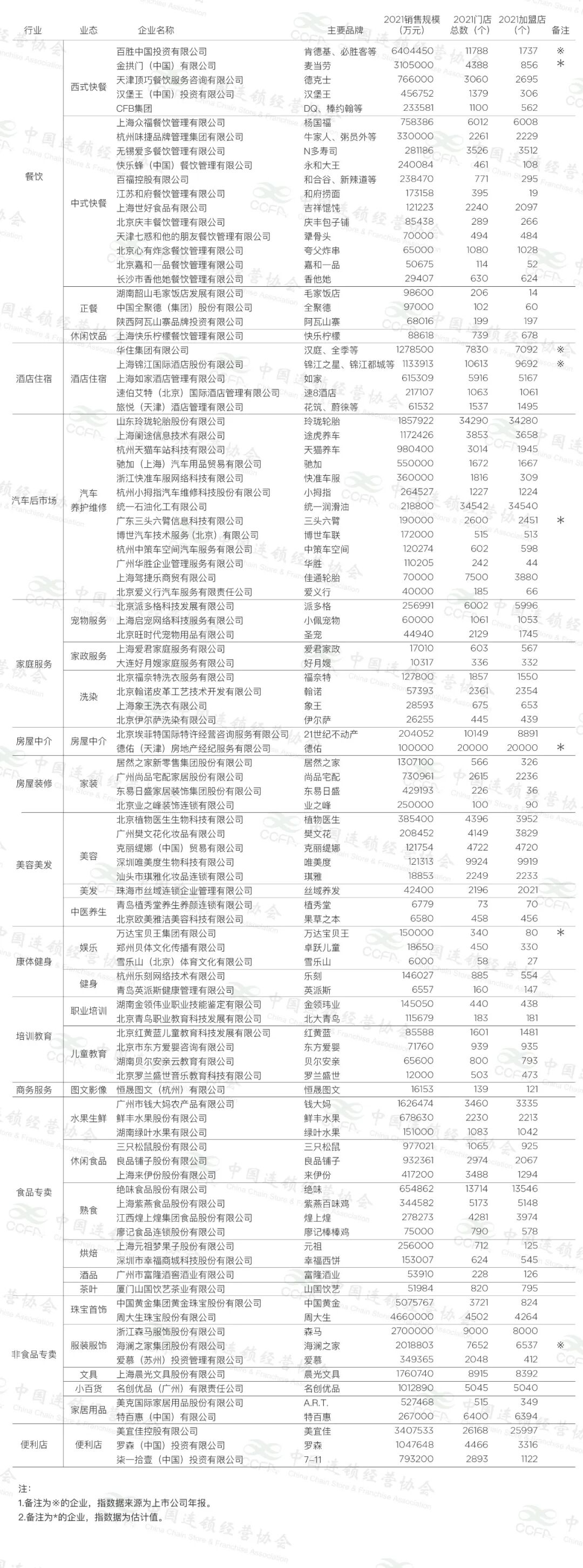 导读:2021年中国特许连锁Top100