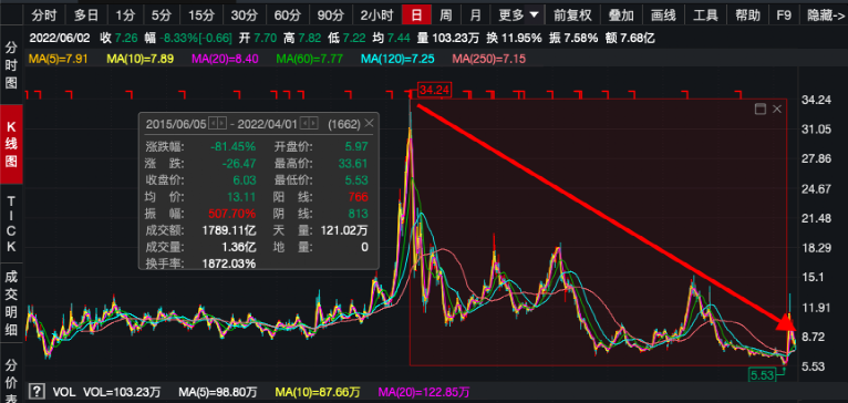 股价累计跌超80%