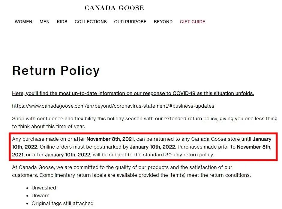 Canada Goose保留最终判定权”