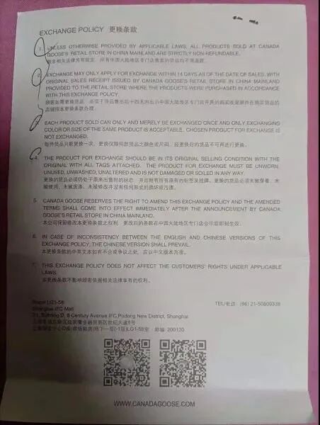 但“加拿大鹅”却不是一般商家,他先入为主,给消费者限定维权的条条框框,一句“中国大陆地区不能退货”让消费者碰壁而回,后续更是处处设卡。