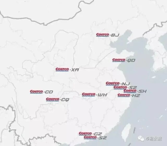 2021年7月,开市客(Costco)公布首批全国城市布局图,覆盖或将要覆盖的城市有北京、上海、广州、深圳、杭州、南京、苏州、武汉、重庆、成都、西安、青岛等12个城市。