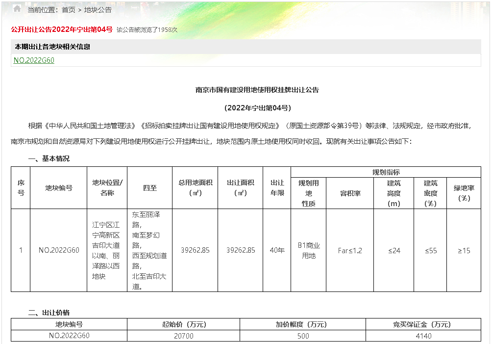 5)竞得人须在签订土地出让合同前与江宁区人民政府签订《投资发展监管协议》,并接受江宁高新区管委会的全程监管。