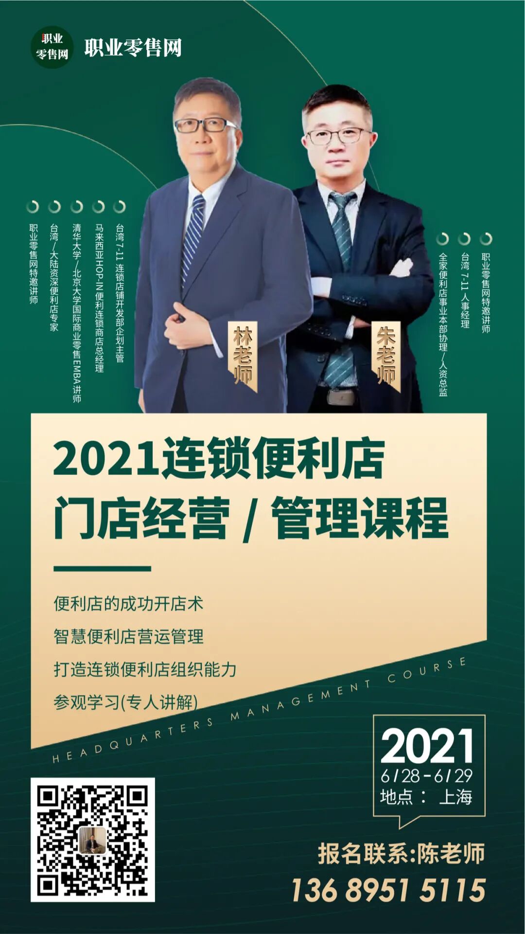 在连锁便利店发展过程中,便利店门店经营、管理等方面的知识是非常很重要的。为此6月28-29日,职业零售网组织了《2021连锁便利店门店经营管理课程》将在上海开班,届时邀请了实战专家林老师和朱老师为大家精彩分享。