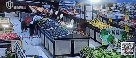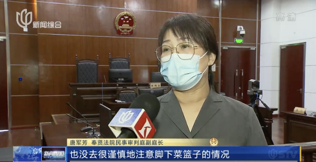 公共视频显示,去年6月的一个下午,82岁的陈阿婆在奉贤区某生鲜超市购物,遇到该超市的工作人员正在上货,并将菜篮放在地面。在经过上货区域的转角时,陈阿婆不慎被地上的菜篮绊倒,重重摔倒在地。