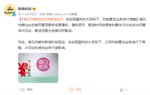 今日(7月28日),每日优鲜方面回应,在实现盈利的大目标下,公司对前置仓业务进行了调整,次日达和其他业务不受影响。