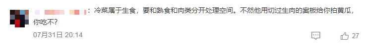 “冷菜属于生食,要和熟食分开处理空间,不然他用切过生肉的案板给你拍黄瓜,你吃不?”
