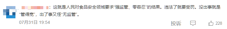 “这就是人民对食品安全领域要求‘强监管、零容忍’的结果,违法了就要受罚,没出事就是‘管得宽’,出了事又怪‘无监管’。”