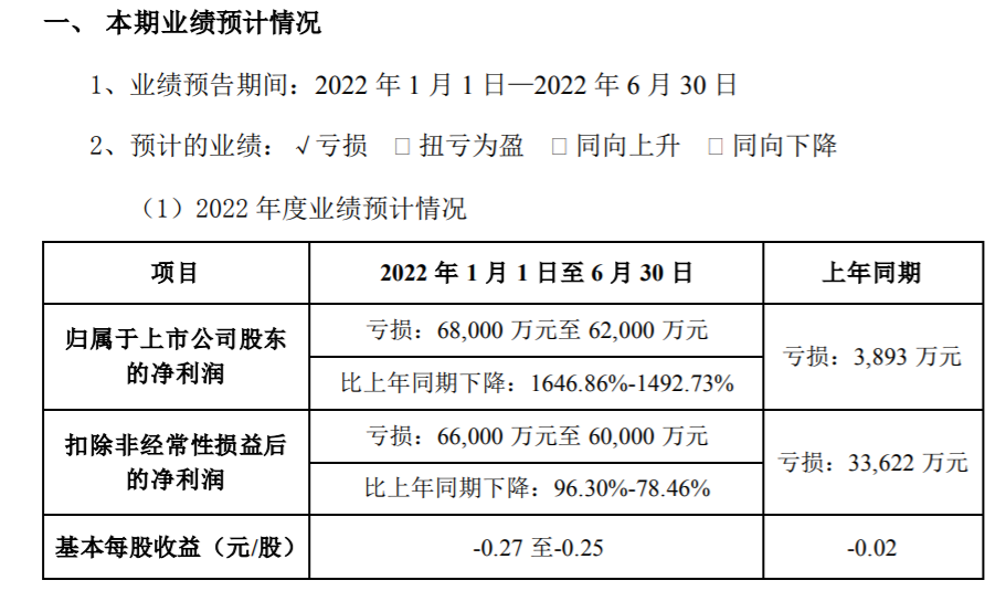 上半年预亏超6亿元