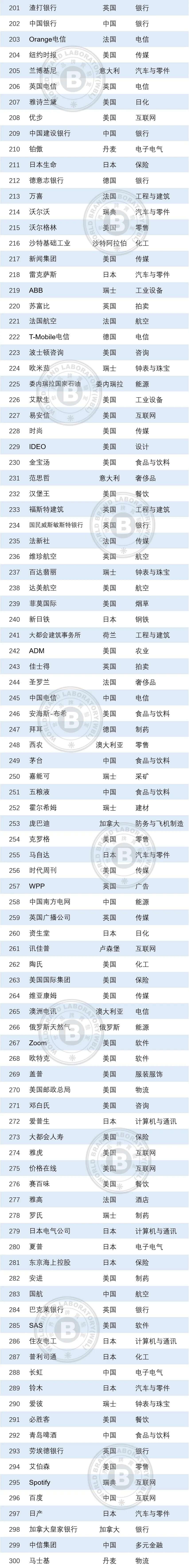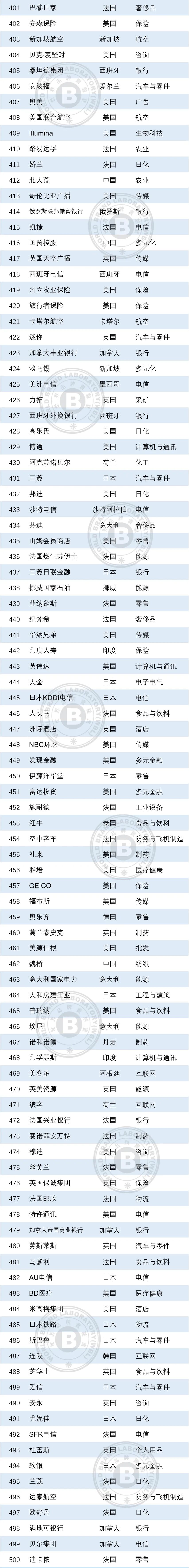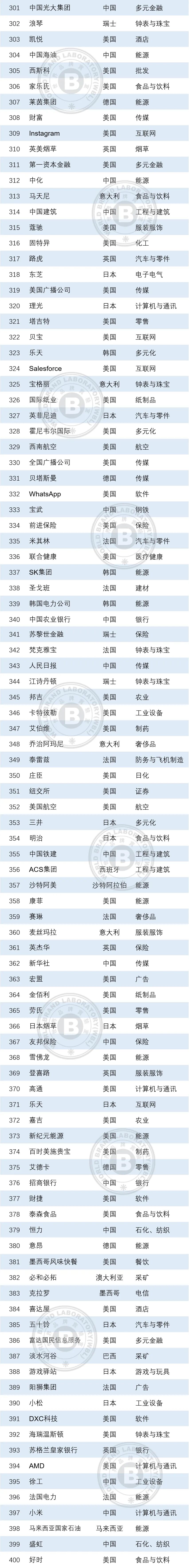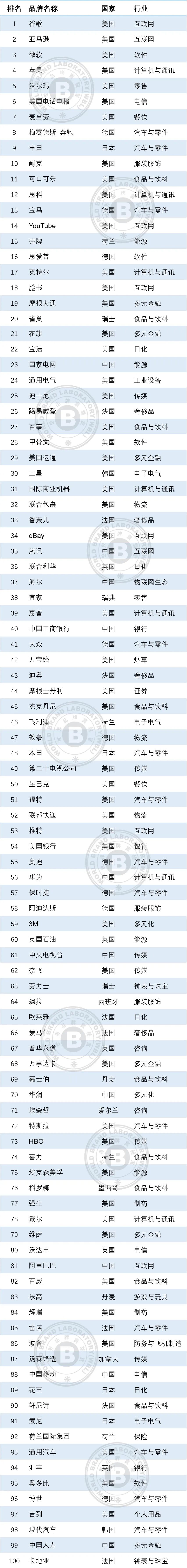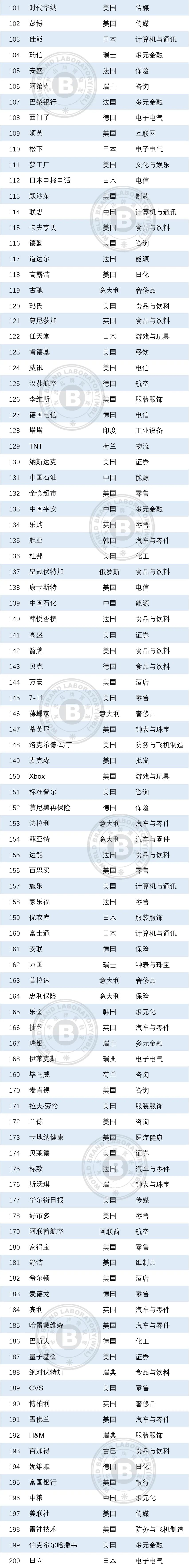 其中,美国电话电报、麦当劳、梅赛德斯-奔驰、丰田、耐克分别位居6-10名。