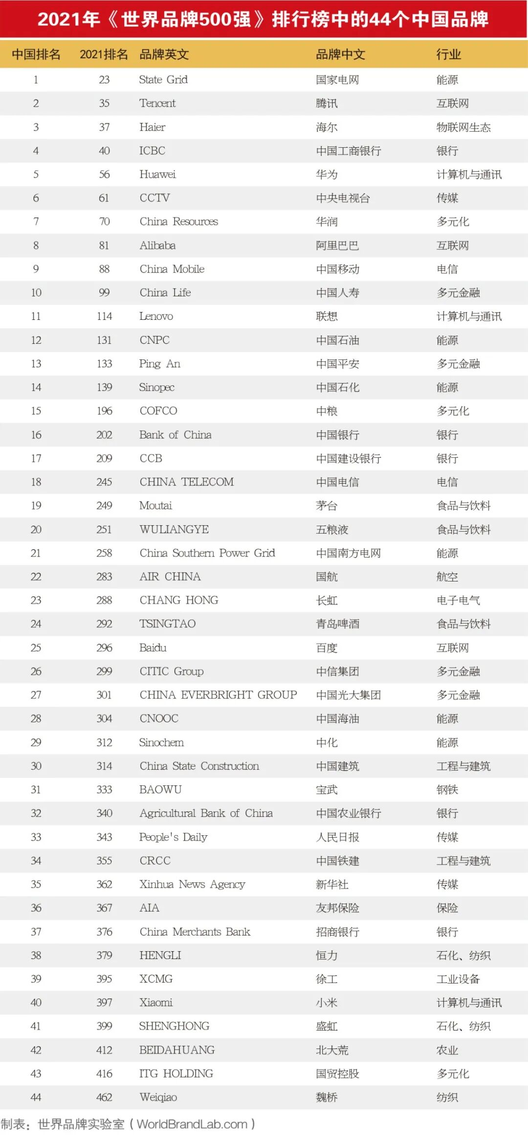 导读:2021世界品牌500强揭晓:沃尔玛第五,中国44个品牌上榜!