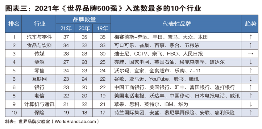图:2021年《世界品牌500强》入选数最多的是个行业
