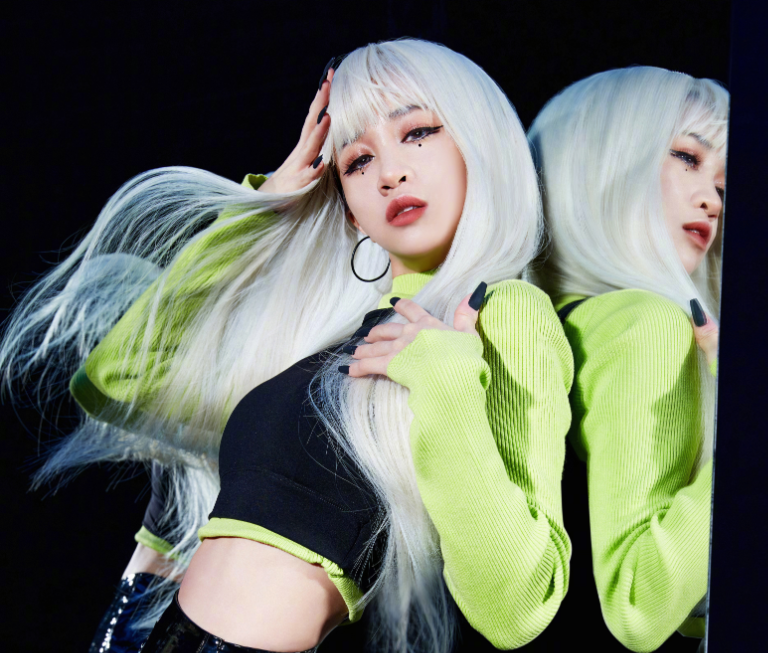 图示:丁佳敏和特步代言人迪丽热巴同台参加活动。