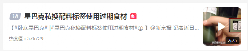 导读:被曝用过期食材、私换标签!星巴克回应:已关闭涉事门店