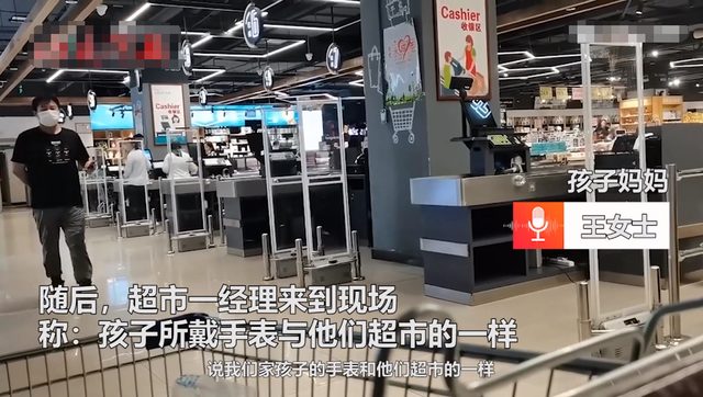发现异常后,该超市的工作人员立即上前搜查了王女士母子二人的包,但未在包中发现什么线索。随后超市的一名经理表示,小女孩戴的手表与他们超市售卖的一样,便认定是孩子偷了超市的东西。
