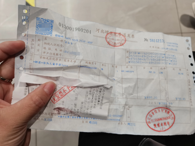 文字的下方,王女士放上了当时买手表时商场所开的票据图片。