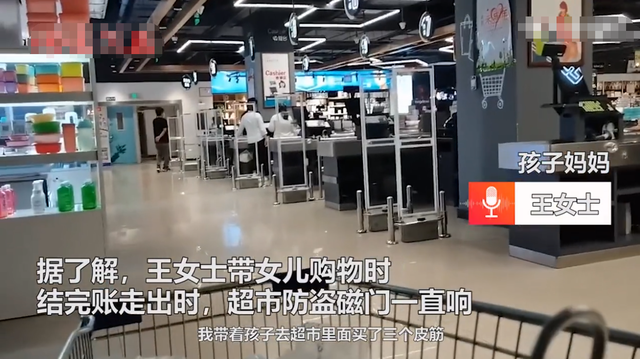 据了解,在今年的5月中旬,王女士带着5岁的女儿去超市购物,但当她结完账往外走时,超市防盗门的磁条却响了起来。