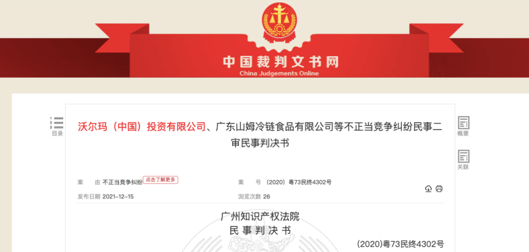 导读:沃尔玛起诉山姆冷链超市获赔100万