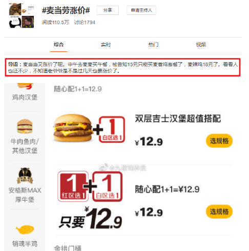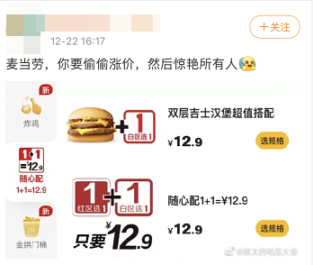 导读:因原料等成本提升,麦当劳部分产品涨价。
