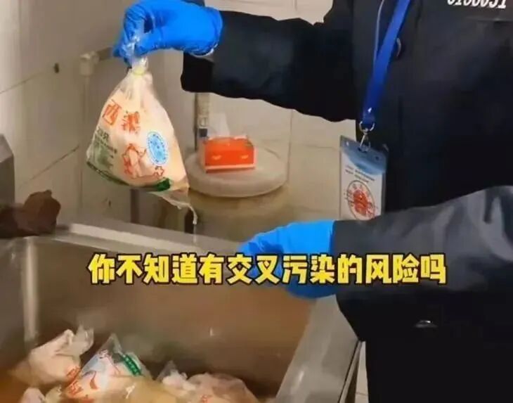 此外,该店还存在用垃圾袋装食品、用生锈的剪刀剪鸡腿、生肉不覆膜放冰柜等多项违规行为。