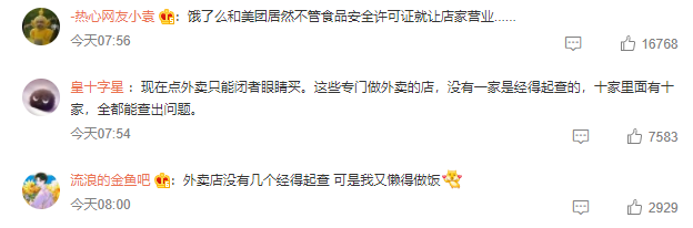 网友纷纷表示“点外卖能闭着眼睛点”“这些外卖店都经不起查”“应该天天查”…