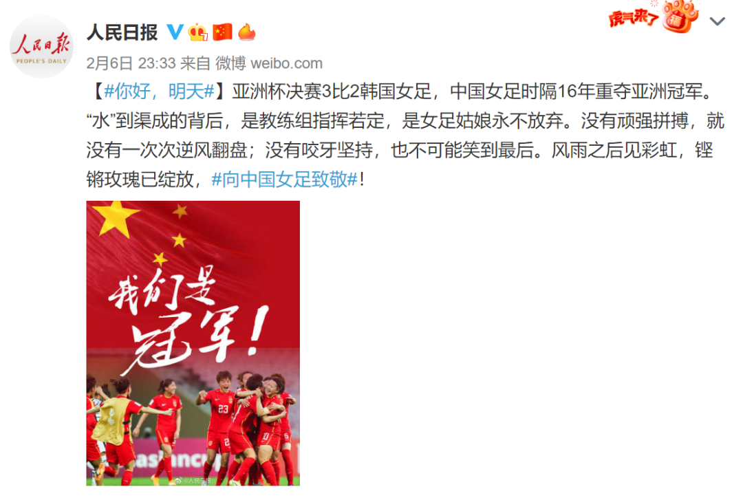 本文来源 | 齐鲁晚报综合北京青年报、封面新闻、@中国女足、中国新闻网