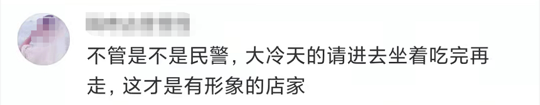 针对“有没有因执勤民警在门口吃饭'影响品牌形象'进行驱赶”的行为,店内的工作人员没有做出正面回应,“我们现在不方便回答这个问题,正在调查整个事情的详细情况。”紧接着,她又表示:“事情发生在昨天(2月13日),但我们没有做出任何投诉民警的事情。”