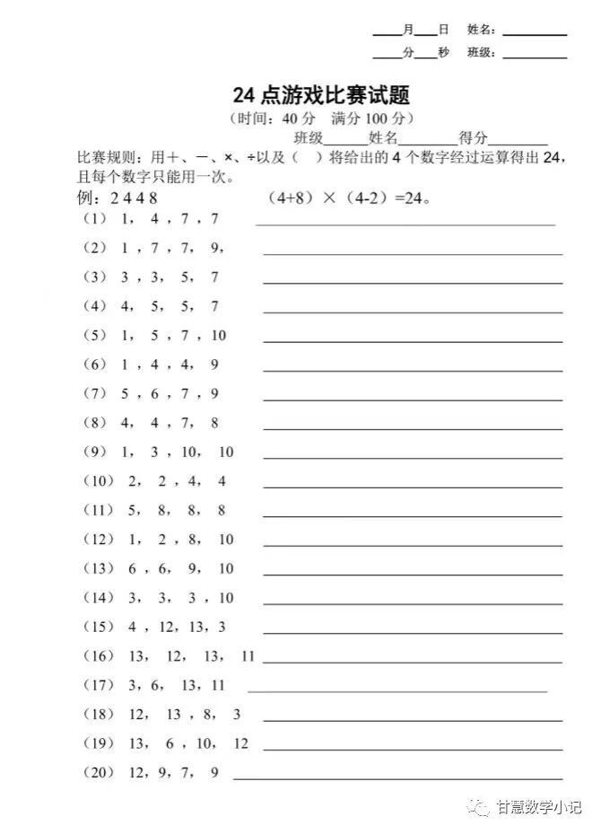 24点相信大家都不陌生,下面这个视频可以参考学习,可以和爸爸妈妈、哥哥姐姐在家里玩一玩儿。老师还为同学们准备了计算24点的题库资料(见附页),赶紧来挑战一下自己吧,期待你优异的表现。
