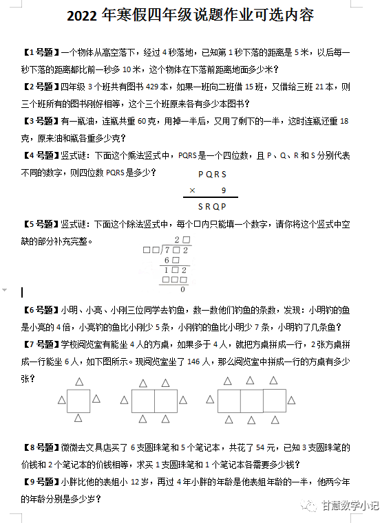 八号商品:寒假微信“数学小讲师”申报。