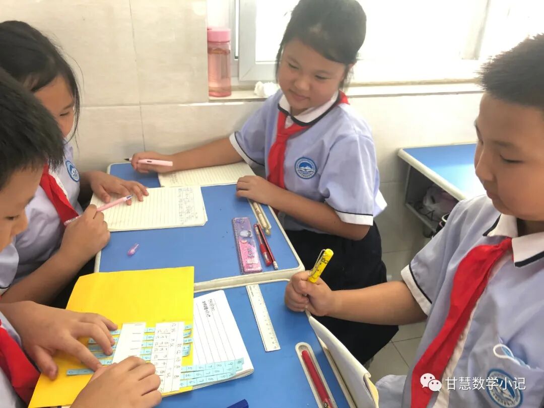 数学课上同学们同桌之间或小组之间,相互拨数,读数,写数。